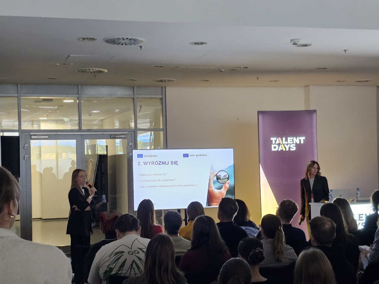 Prezentowaliśmy inicjatywy, które pomagają w dokładnie takich wyzwaniach. Europass to ogólnoeuropejska platforma, dzięki której każdy może stworzyć profesjonalne dokumenty aplikacyjne oraz portfolio online całkowicie bezpiecznie, w formacie uznawanym w całej Europie oraz bez ponoszenia żadnych kosztów. Uczestnikom Talent Days prezentowaliśmy, jak założyć swój Profil Europass, uzupełnić go o umiejętności, doświadczenie, edukację i w kilka chwil wygenerować atrakcyjne CV.