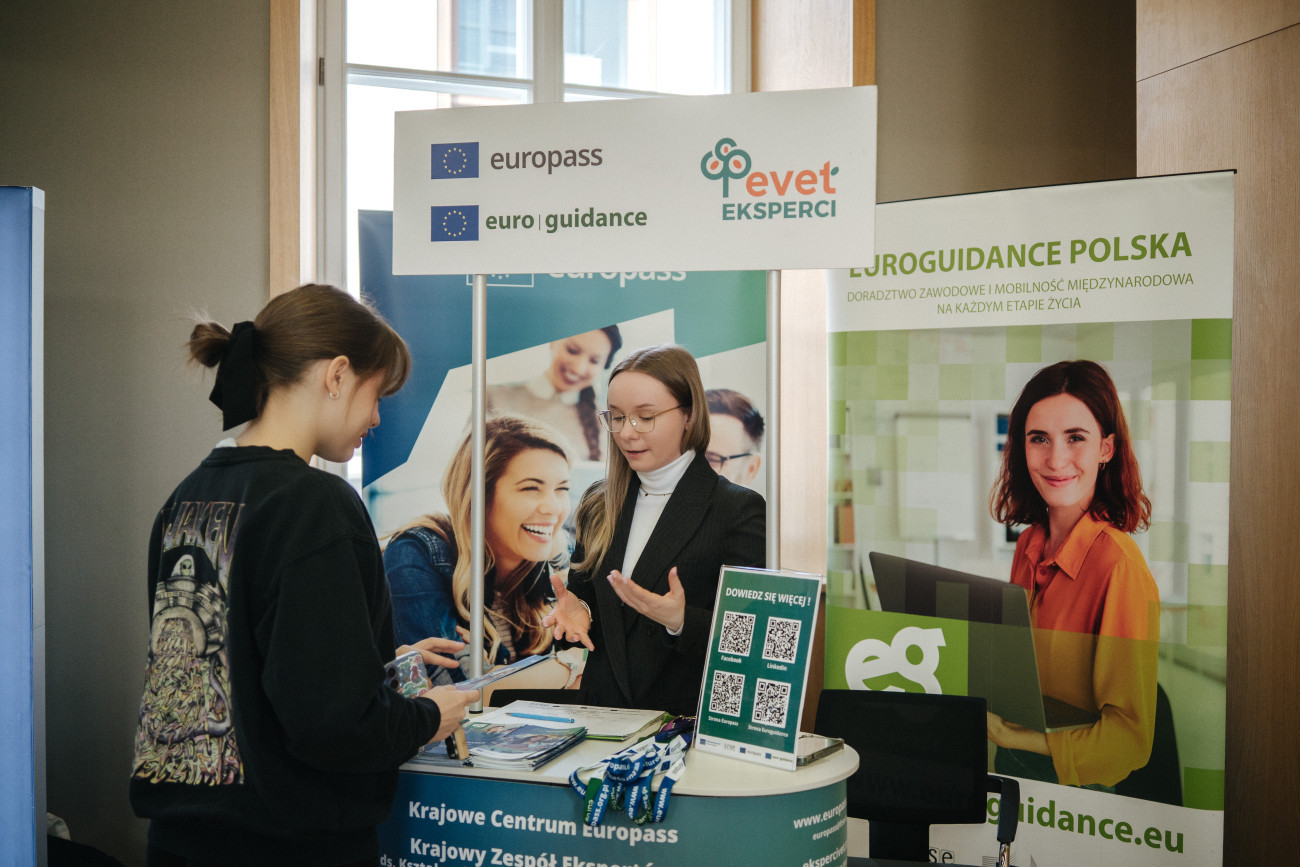 Wśród wystawców wydarzenia obecne było także Krajowe Centrum Europass i Euroguidance, które zaprosiło uczestników do rozmowy o mobilności zawodowej i edukacyjnej, zdobywaniu doświadczenia zawodowego a także świadomym planowaniu dalszych kroków zawodowych. Nasze stoisko stało się przestrzenią spotkań z osobami, które chciały lepiej uporządkować swoje dotychczasowe doświadczenia i dowiedzieć się, jak korzystać z europejskich narzędzi Europass w planowaniu kariery. Rozmawialiśmy o mobilności zawodowej i edukacyjnej, możliwościach zdobywania doświadczenia oraz świadomym planowaniu kolejnych kroków zawodowych. Dzieliliśmy się również wiedzą, jak opisywać swoje umiejętności oraz jak już na etapie studio budować solidne podstawy pod przyszłe decyzje zawodowe z wykorzystaniem materiałów merytorycznych Euroguidance.
