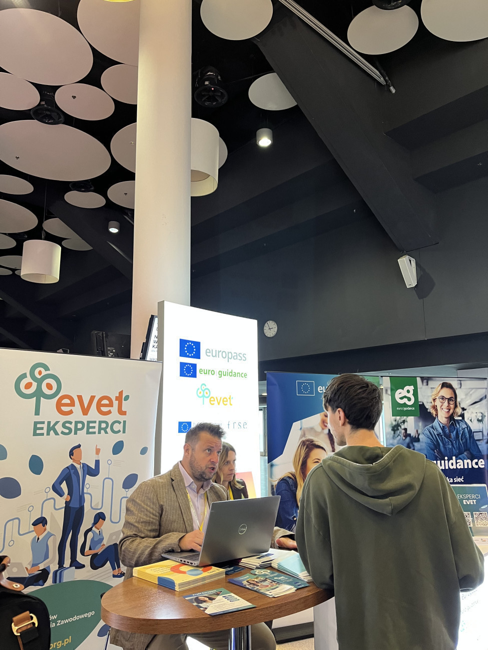 W tym inspirującym otoczeniu nie mogło zabraknąć również Krajowego Centrum Europass i Euroguidance Polska oraz Krajowego Zespołu Ekspertów ds. Kształcenia i Szkolenia Zawodowego (EVET) w imieniu Fundacji Rozwoju Systemu Edukacji. Wystąpiliśmy w roli przewodników po świadomym i skutecznym planowaniu kariery. Nasze stoisko cieszyło się ogromnym zainteresowaniem - odpowiadaliśmy na dziesiątki pytań, doradzaliśmy i rozwiewaliśmy wątpliwości zarówno w kwestii praktycznych aspektów szukania pracy jak i długofalowego rozwoju zawodowego.