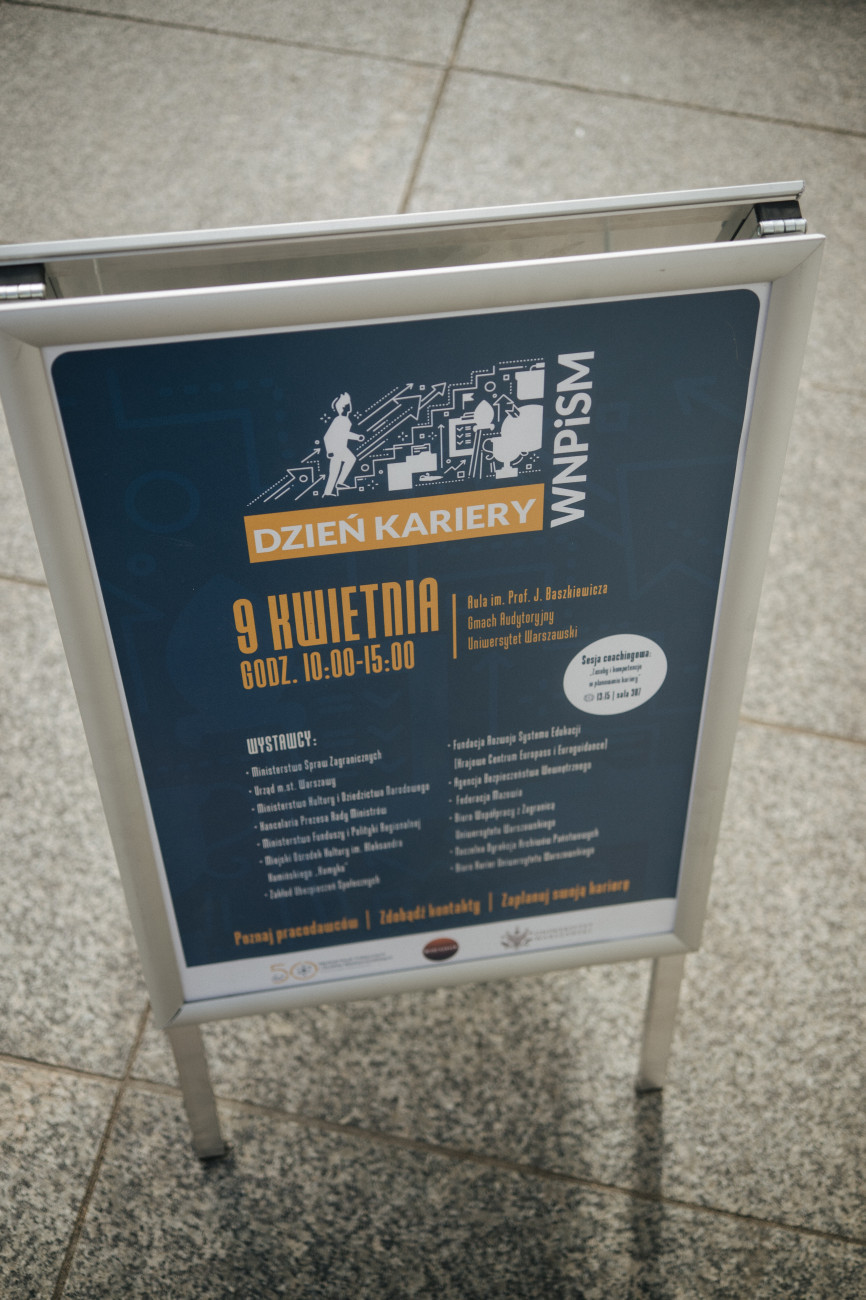 Dzień Kariery na WNPiSM UW zgromadził osoby zainteresowane rozwojem zawodowym, poznawaniem różnych ścieżek kariery oraz kontaktem z przedstawicielami instytucji i organizacji związanych z rynkiem pracy.