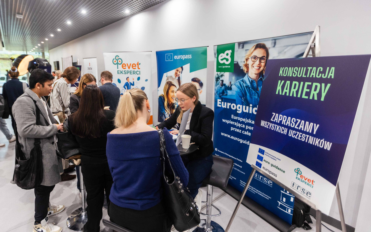 W strefie konsultacji CV Europass i Euroguidance uczestnicy mogli uzyskać porady, jak stworzyć profesjonalne CV Europass, zaplanować ścieżkę rozwoju lub zaprezentować swoje umiejętności w sposób przejrzysty i zgodny z oczekiwaniami na rynku. Dodatkowo, KCE poszerzało wiedzę na temat tego, jak narzędzia Europass wspierają budowanie kariery w całej Europie, a inicjatywa Euroguidance pomaga rozwijać kompetencje oraz poszerzać wiedzę na temat m.in: rynku pracy, procesów rekrutacyjnych, sztucznej inteligencji w procesie rekrutacji.